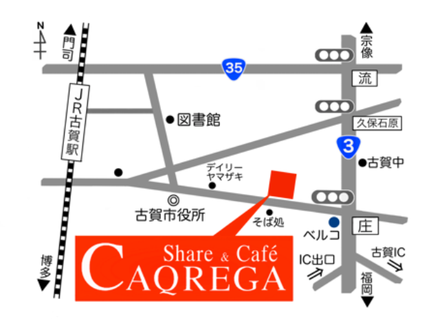 □車:九州自動車道 古賀IC 宗像方面出口より庄交差点を左折。